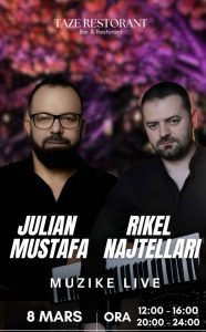 Te Taze Restorant, kemi përgatitur një atmosferë unike për të gjithë ju! 🎶 Me muzikë live nga Julian Mustafa & Rikel Najtellari, dy orare për t’ju përshtatur më së miri dhe një menu të pasur me gatime tradicionale dhe moderne. 🍽️✨