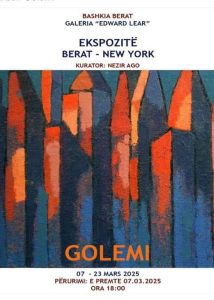 Ditën e premte, dt. 7 Mars 2025, ora 18.00, Galeria e Arteve “Edward Lear”, mirëpret ekspozitën: “Berat – New York” të piktorit të njohur beratas Arben Golemi.