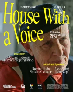 Prishtina Queer Festival, Dylberizm dhe Aleanca LGBT sjellin në Tiranë shfaqjen e filmit dokumentar “HOUSE WITH A VOICE” – me regji të Kristine Nrecaj dhe Birthe Templin. HWAV është rrëfim i gjashtë Burrneshave që jetojnë në një shoqëri patriarkale. Gjashtë histori të ndryshme jete dhe një vendim i përbashkët: të heqin dorë nga feminiteti dhe të jetojnë si burra, për të fituar një zë, për të përjetuar lirinë personale dhe për të luftuar për barazi.